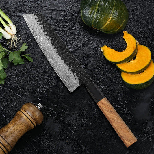 Couteau Gyuto 8 Pouces en Acier Damas VG10 – Couteau de Chef Japonais Professionnel avec Manche en Bois d’Olivier
