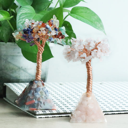 Ornement Arbre de Fortune sur Base en Pierre brute de Cristal Naturel - Énergie et Équilibre