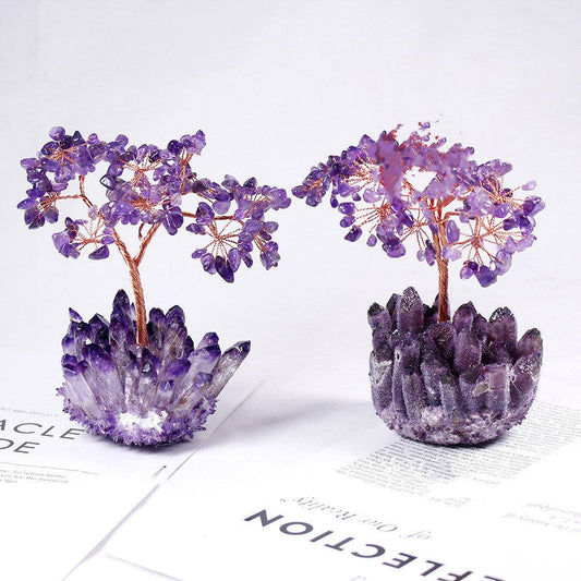 Arbre de Vie en Améthyste avec Graviers de Cristal Colorés – Décoration Énergétique et Équilibrante