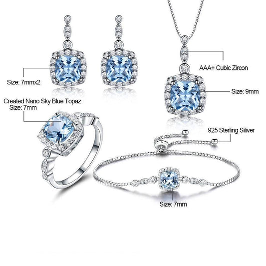 Ensemble Bijoux en Argent Sterling 925 avec Topaze Bleue Ciel – Collier, Bague, Boucles d’Oreilles et Bracelet