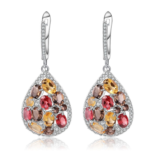 Ensemble Bijoux en Argent Sterling 925 – Collier et Boucles d’Oreilles avec Pierres Colorées