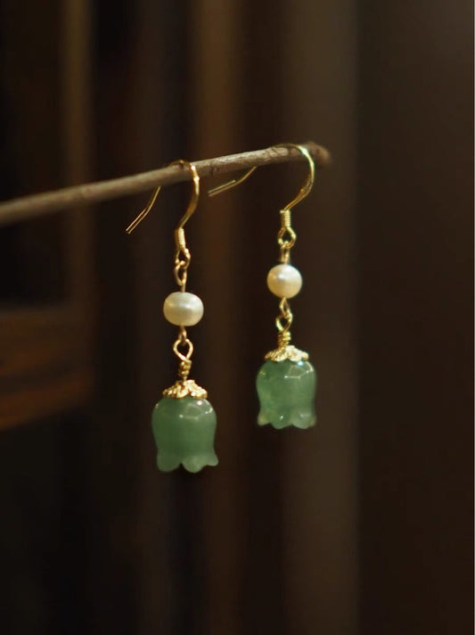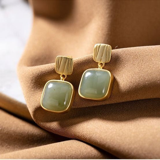 Boucles d'Oreilles en Jade Dongling – Style Rétro Élégant