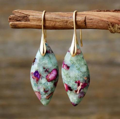 Boucles d’Oreilles en Pierres Naturelles Rouge Regalite – Design Antique avec Crochets Dorés ou Argentés