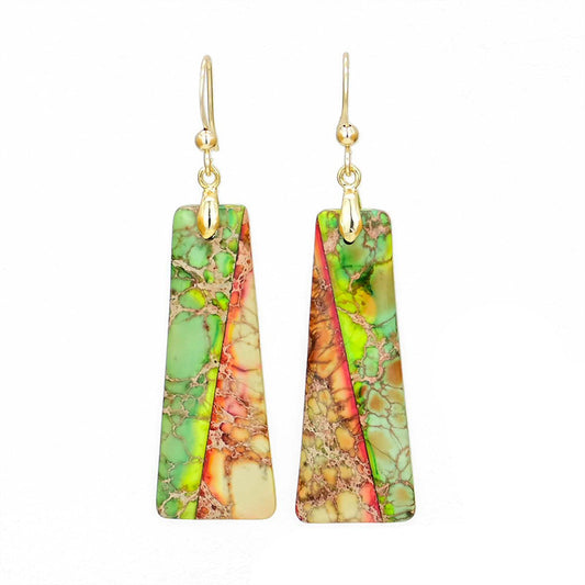 Boucles d’Oreilles Géométriques Trapeze en Pierres Naturelles – Style Ethnique Rétro en Or et Argent