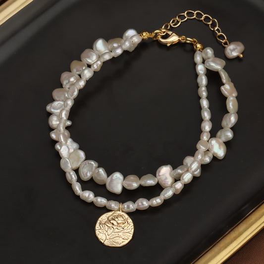 Bracelet en perles naturelles d'eau douce avec motif gravé - Un bijou exquis pour sublimer votre style