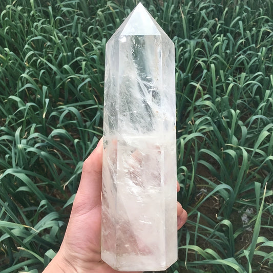 Obélisque en quartz naturel transparent – Grande tour de cristal pour Reiki et équilibre énergétique (17-18 cm, 400 g)