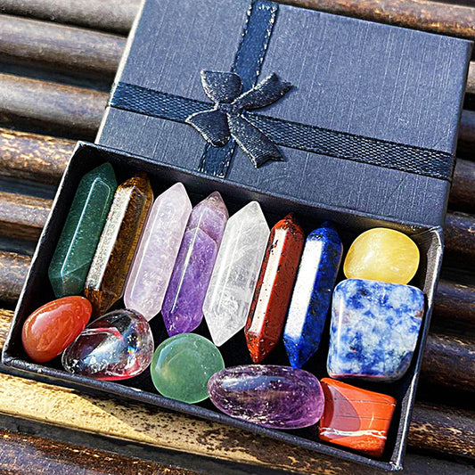 Set de Prismes Hexagonaux en Pierres Brutes - 14 Pièces en Coffret Cadeau