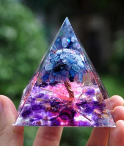 Pyramide Orgonite Arbre de Vie en Kyanite Quartz avec Cristal d'Améthyste Reiki – Équilibre et Bien-être