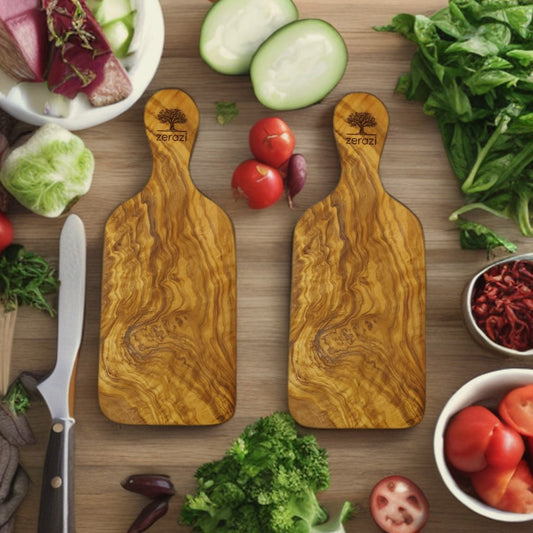 Zerazi | Lot de deux planches à découper pour tapas et apéritifs | Bois d’Olivier | Écologique | Entièrement Fabriqué À La Main | Durable | Hygiénique