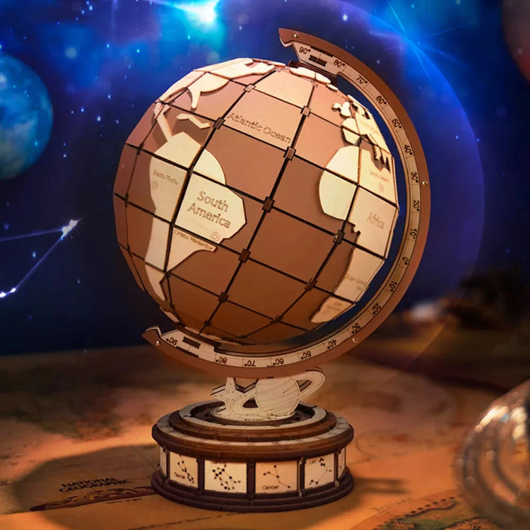 Leuchtender Globus | 3D-Holzpuzzle | 180-teiliger Modellbausatz | DIY dekorative Lampe | Robotime