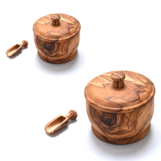 Zerazi | 2 Zuckerdosen mit 2 Messbechern | Olivenholz | Ökologisch | Vollständig Handgefertigt | Nachhaltig | Hygienisch