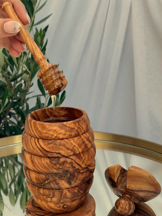 Zerazi | Honigtopf Mit Honiglöffel | Olivenholz | Ökologisch | Vollständig Handgefertigt | Nachhaltig | Hygienisch...