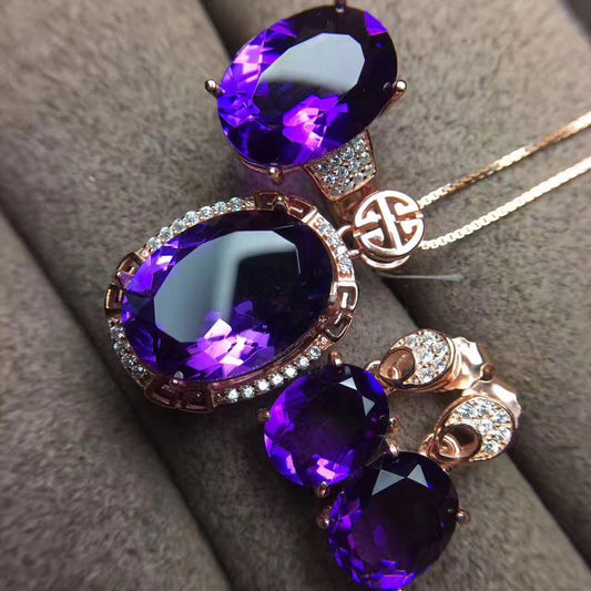 Conjunto de Pendientes y Collar de Amatista Natural - Plata de Ley y Piedras Semipreciosas