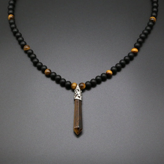Collier Hexagonal en Pierre Naturelle – Cristal, Améthyste, Oeil de Tigre et Plus