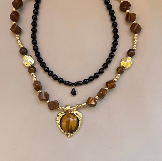 Collar Ojo de Tigre en Piedra Natural – Cadena de Clavícula en Cuentas Geométricas