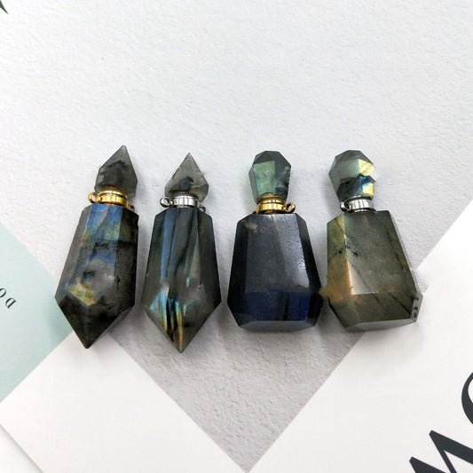 Collar Colgante con Botella de Aceites Esenciales en Labradorita Natural: Elegancia y Bienestar en un Accesorio Único 💎🌿